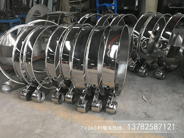 全脂奶粉篩利用YZUL立式振動電機作為激振源,通過振動電機上下兩端的偏心重錘將旋轉運動轉變?yōu)樗?、垂直、傾斜的三次元運動,并傳遞到旋振篩的篩面上;物料通過入料口進入設備內(nèi),根據(jù)不同物料篩分要求,物料經(jīng)過1-5層采用不同目數(shù)的金屬編織篩網(wǎng)的篩分層,