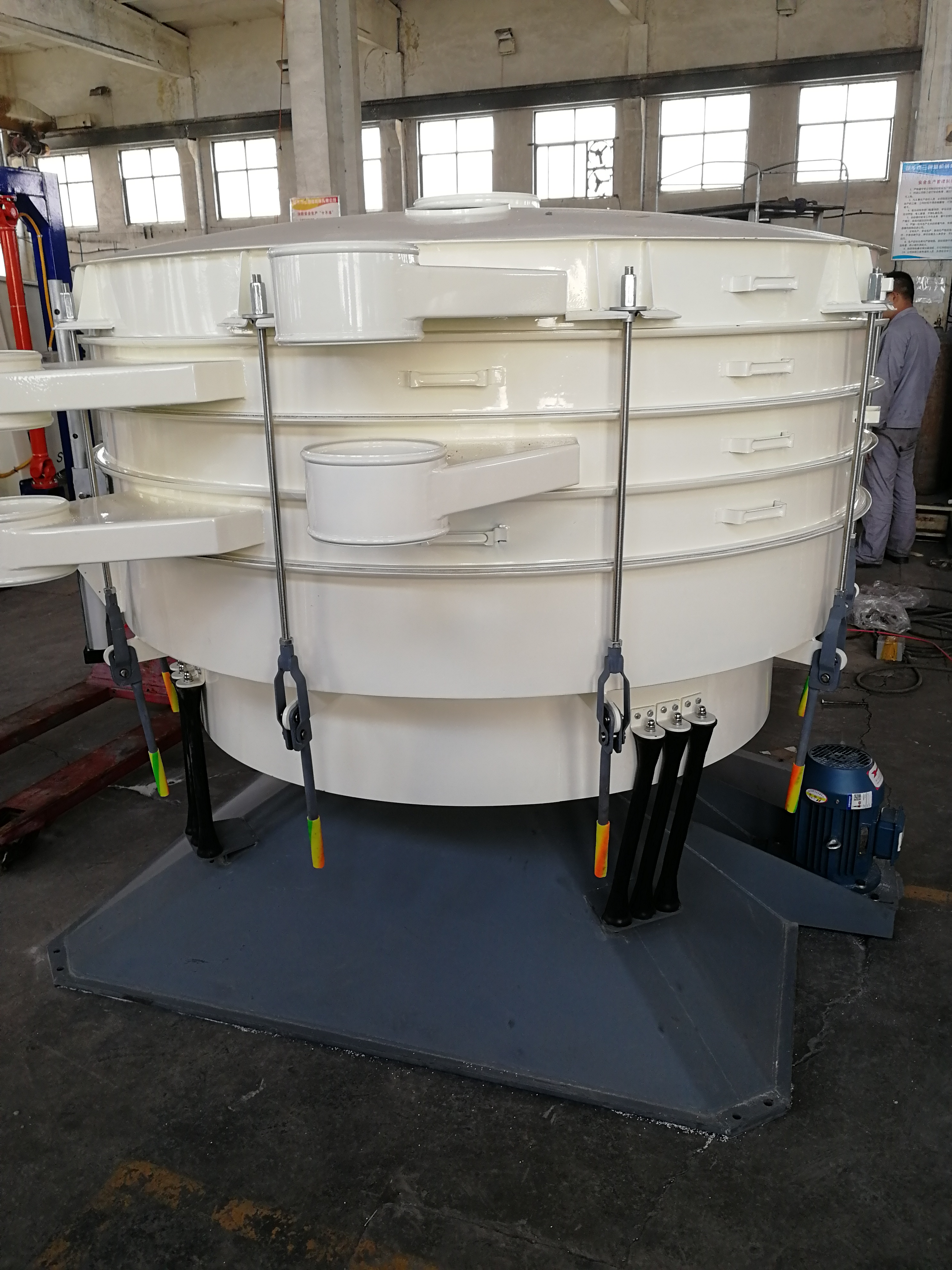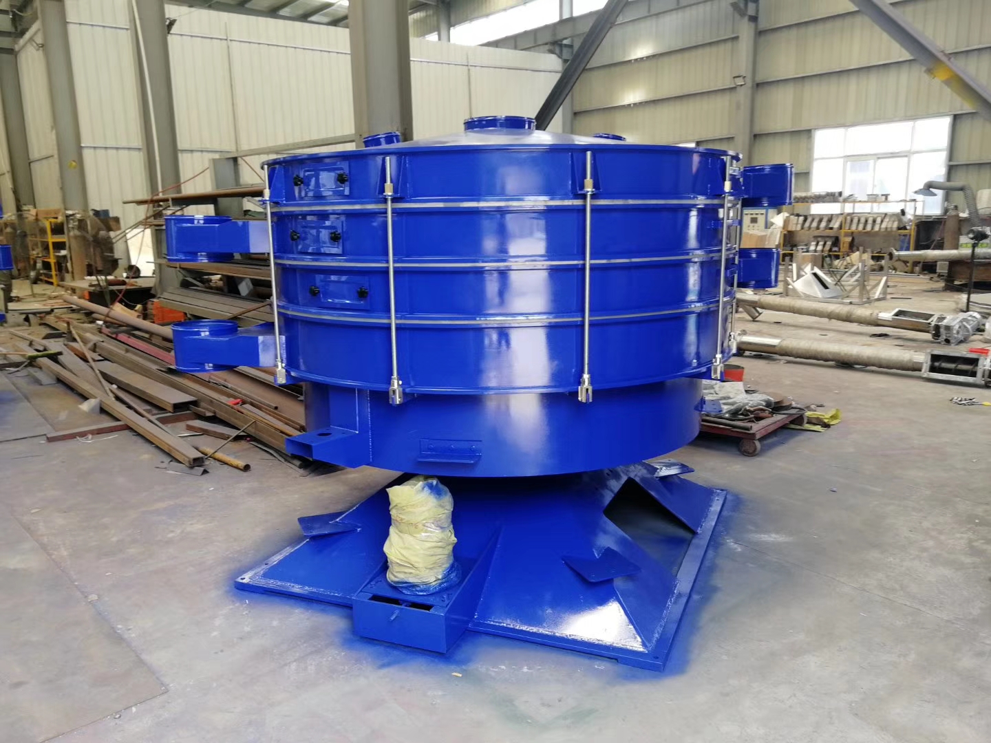 過濾篩是一種用于漿液過濾的篩分機(jī),由振動(dòng)器、礦漿分配器、篩框架、懸架彈簧、篩網(wǎng)等部件組成。結(jié)構(gòu)可靠。振動(dòng)力。篩分效率高。振動(dòng)噪音低。堅(jiān)固耐用。維護(hù)方便。過濾篩廣泛應(yīng)用于礦山、建材、交通、能源、化工等行業(yè)。陶瓷漿料,釉料行業(yè)使用。 過濾篩采用高頻,利用氣缸偏心軸振動(dòng)器和偏塊調(diào)節(jié)振幅,加速了大密度有用的礦物和分離效果,增加了小于分離粒度的材料與篩孔接觸的概率。因此,它導(dǎo)致了良好的分離條件,使小于分離粒度的材料成為大比例的材料。所需驅(qū)動(dòng)功率小,啟動(dòng)時(shí)啟動(dòng)電流小,噪音低;具有效率高、振幅小、篩分頻率