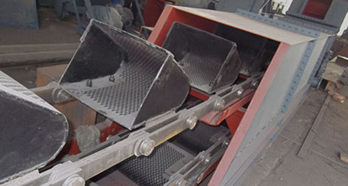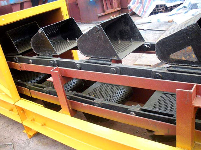 脫水斗式提升機(jī)是選煤廠和鈣鎂磷肥廠常用的機(jī)械設(shè)備之一,具有結(jié)構(gòu)簡(jiǎn)單、運(yùn)轉(zhuǎn)可靠的優(yōu)點(diǎn)。通常兼有脫水和運(yùn)輸雙重作用??勺鳛榻K脫水設(shè)備,也可作為初步脫水設(shè)備。它適用于提升洗滌后的中煤、矸石和冷卻后的鈣鎂磷肥,也適用輸送洗滌后的其他塊狀或顆粒狀的物料,物料在提升輸送過程中,可在重力作用下自行脫水。對(duì)于大塊物料及水分要求不太嚴(yán)格的產(chǎn)品,如跳汰分選作業(yè)的中煤、矸可用脫水斗式提升機(jī)直接作為zui終脫水設(shè)備,獲得終出廠產(chǎn)品。對(duì)粒度較細(xì)、或脫水不太容易、水分又要求比較嚴(yán)格的產(chǎn)品,脫水斗式提升機(jī)可作為初步脫水設(shè)備。如粗煤泥回收作業(yè)中,撈坑沉淀的煤泥可先經(jīng)脫水斗式提升機(jī)初步脫水,再進(jìn)一步用脫水篩和離心脫水機(jī)作zui終脫水。